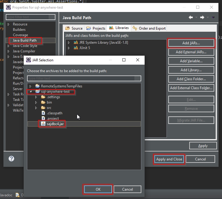 Click on Add JARs... and select the just copied JAR from your projects root directory.